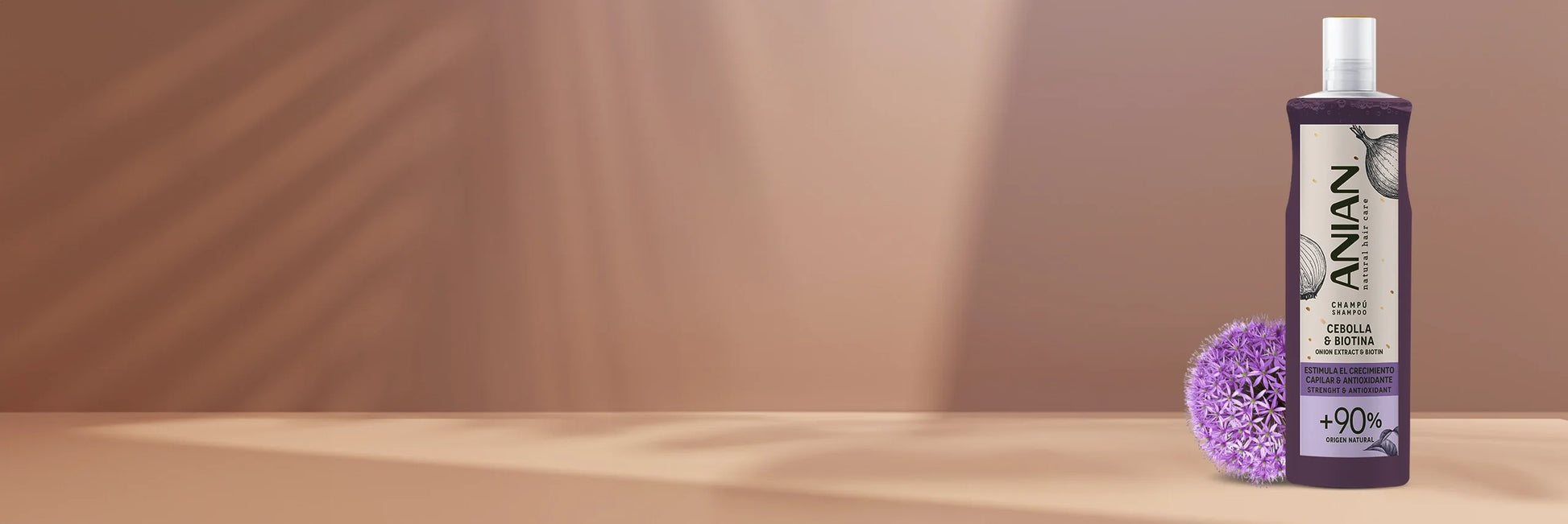 El Champú de Cebolla y Biotina de Anian limpia en profundidad, fortalece la estructura capilar y activa el crecimiento del cabello.
